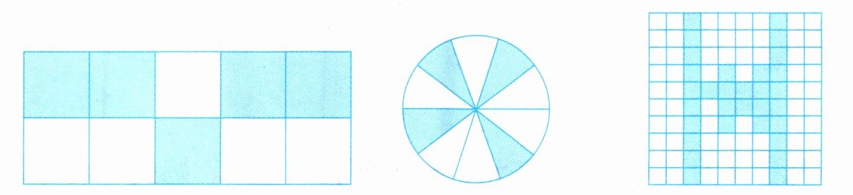 1. 把下面各图中的涂色部分分别用分数和小数表示出来。