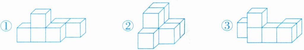 下面 3 个几何体都是由棱长为 1cm 的小正方体摆成的。