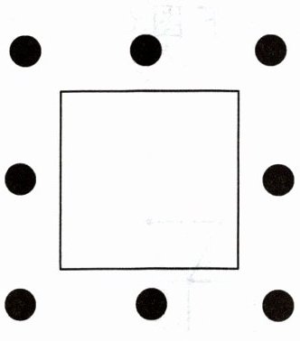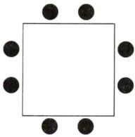7. 如图,正方形桌子每条边上摆了3把椅子(黑色圆)。椅子的数量不变,怎样移动可以使每条边上有2把椅子?画出移动后的图形。