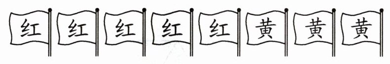 5. 学校林荫道的一边插了8面彩旗(如图)。怎样移动,能使红旗与黄旗间隔排列?