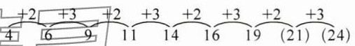 (2) 6 13 提示:排列规律要一个数隔一个数地找。第一、三、五、七个数依次加3,10 + 3 = 13,第九个数是13;第二、四、六个数不变,都是6,所以第八个数是6。