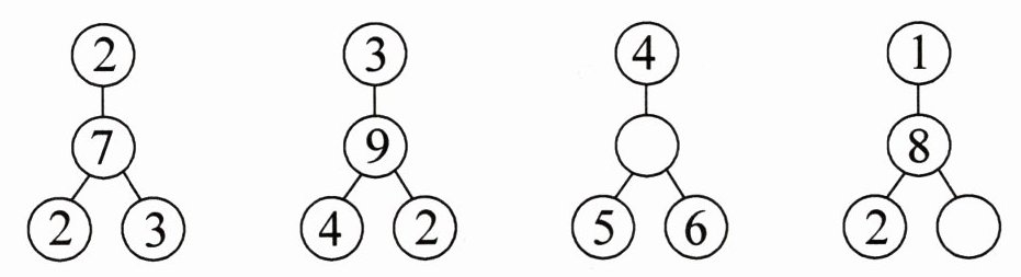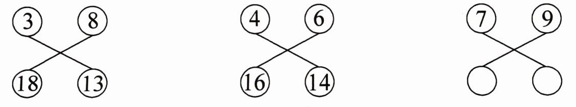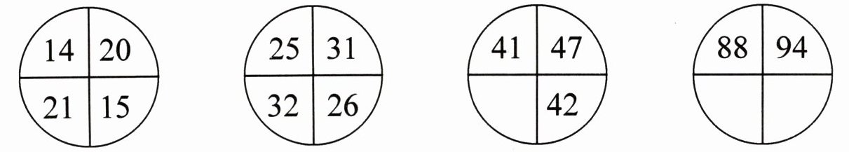 11.根据前面两个圆中4个数的关系,在空白处填上适当的数。