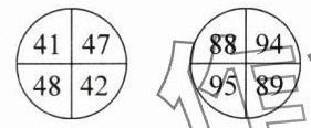 提示:每组中左上角的数加6等于右上角的数;右上角的数加1等于左下角的数;左上角的数加1等于右下角的数。