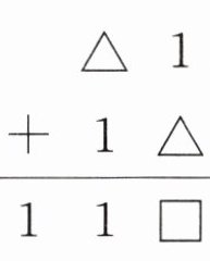 ;再观察这个算式,看十位上的$\triangle + 1 = 11$,$\triangle$应是10,怎么变成两位数了呢?原来还包括了个位进上来的数,所以$\triangle$应是9。
