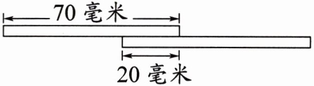 12. 有两块各长70毫米的纸板,钉成一块纸板(如下图),中间钉在一起的重叠部分长20毫米。钉成的这块纸板长