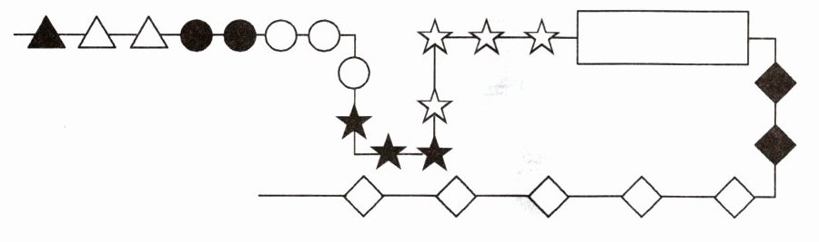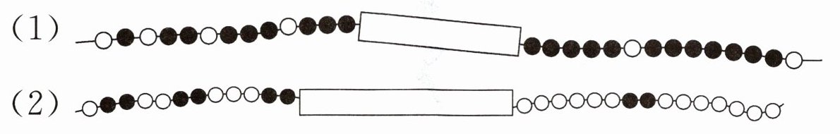 9. 下面的两串珠子有白有黑,按照一定规律串成,请画出中间被遮住的部分。
