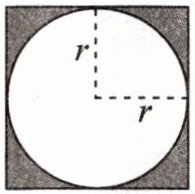 点拨:图中阴影部分的面积正好等于正方形的面积减去圆的面积。在计算圆的面积时,圆的半径未知,如果想利用正方形的面积求出圆的半径,显然是很难的,考虑到半径与正方形的关系,可以设圆的半径为r厘米,得出$r×r×4= r^{2}×4= 10$,$r^{2}= 10÷4= 2.5$,则圆的面积为$3.14×r^{2}= 3.14×2.5= 7.85$(平方厘米),再用正方形的面积减去圆的面积就可得到阴影部分的面积。