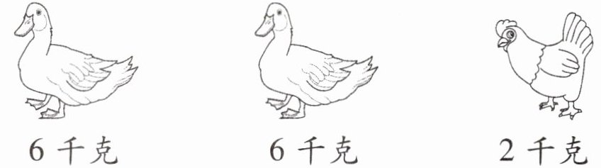 1 只鸭重 6 千克,1 只鸡重 2 千克。2 只鸭和 1 只鸡共重多少千克?