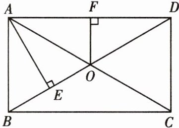 8. 如图所示,矩形 ABCD 的两对角线交于点 O,$AE⊥BD$,$OF⊥AD$,$BE:ED = 1:3$,$OF = 2cm$,求 AC 的长.
