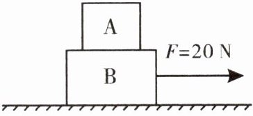 6. A、B 两个物体叠加在水平地面上,如果以$F = 20 N$的水平向右的力拉物体 B,系统仍处于静止状态,则物体 B 受到地面的摩擦力大小为