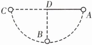 4. 如图,用一根绳子吊一重物,其上端吊在钉子上于D点,先把重物拉至与钉子水平的位置A,然后放手,小球下摆,不计阻力,在A位置时