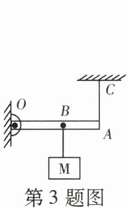 3. 如图所示的轻质杠杆$OA长为L$,当物体$M从O点逐渐向右移动到达B$点时,绳$AC$恰好被拉断,已知$M重1000\ N$,$AB= \frac{1}{8}L$,则绳$AC$所能承受的最大拉力等于
