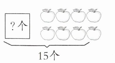 2. 图中显示一共有15个苹果,右边有8个苹果,求左边盒子里苹果的数量,用减法计算,即15 - 8 = 7(个)。