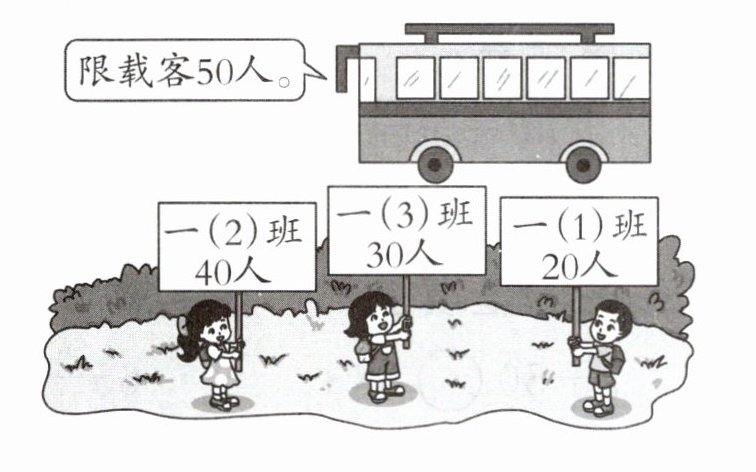 (3)班的同学上车后,还剩下多少个座位? $50-30=20$(个)