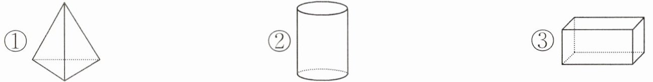【解析】:要画一个圆,需要借助具有圆形面的立体图形。观察所给图形,①是三棱锥,它的面都是三角形,没有圆形面;②是圆柱,圆柱的上、下底面都是圆形;③是长方体,它的面都是长方形(或正方形),也没有圆形面。所以可以用圆柱的底面来帮助画圆。