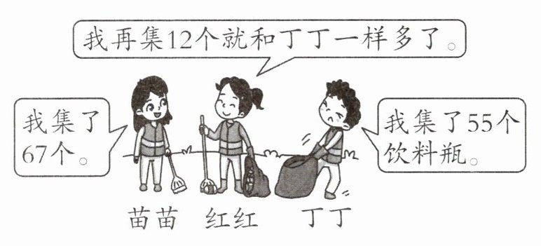(1) 丁丁比苗苗少集了多少个饮料瓶?