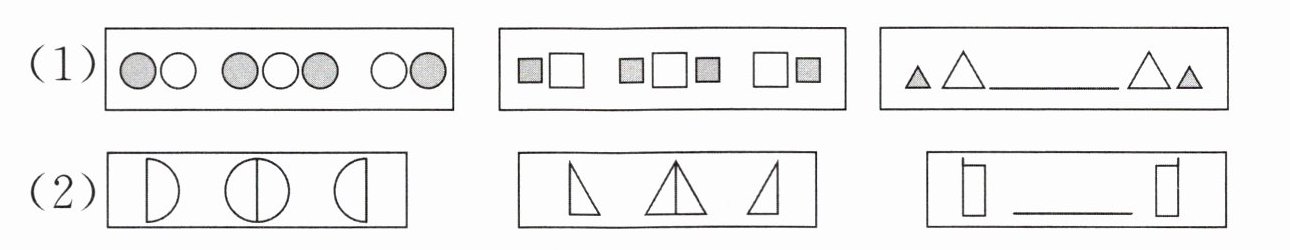 1. 第3个方框的横线上应该画什么图形?画一画。
