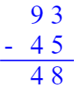 43-40:4个十减4个十得0,个位是3,结果为3;
