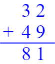 【解析】:本题主要考查100以内加减法的口算能力。加法计算时,相同数位对齐,从个位加起,哪一位上的数相加满十,就向前一位进一;减法计算时,相同数位对齐,从个位减起,哪一位上的数不够减,就从它的前一位退一作十,和本位上的数合并在一起,再减。