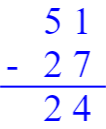 14-7:个位4不够减7,从十位退1作10,14-7=7;