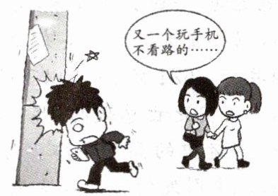 4. 如漫画所示,公交车上、餐桌上、车站里,甚至走路时,无论在何地,只要有空闲时间,很多人总是紧盯手机屏幕,刷抖音、看新闻、看小说、玩微信、玩游戏……殊不知,这一举动很可能给自己和身边人带来安全隐患。请你给这些人提个醒,下列恰当的是 (