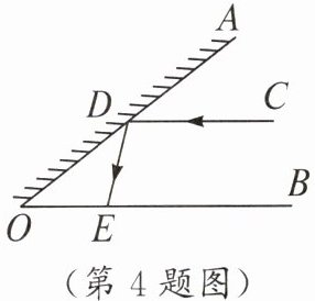 4. 如图,$∠AOB的一边OA$为平面镜,$∠AOB= 38^{\circ }$,一束光线(与水平线$OB$平行)从点$C$射入经平面镜反射后,反射光线落在$OB上的点E$处,此时$∠ADC= ∠ODE$,则$∠DEB$的度数是