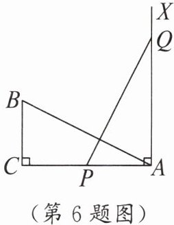 6. 如图,在$△ABC$中,$∠C= 90^{\circ },AC= 8,BC= 4,AX⊥AC$,点 P,Q 分别在边 AC 和射线 AX 上运动,若$△ABC与△PQA$全等,则 AP 的长是