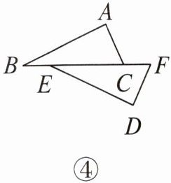 (1)如图④,若$△ABC\cong △DEF$,且点 B 与点 E、点 C 与点 F 是对应顶点,则进行怎样的图形变换可以使这两个三角形重合?