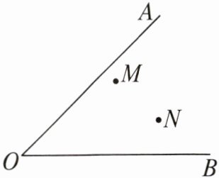 14. 如图,已知∠AOB,点 M 和点 N 在∠AOB 的内部,试在 OA,OB 上分别找点 P,Q,使四边形 MNQP 的周长最短。(尺规作图,不写作法,保留作图痕迹)
