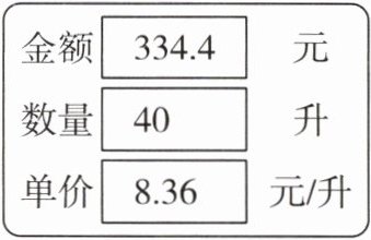 5. 右图是汽车加完汽油后,加油机显示屏上显示的内容,在加油过程中加油机显示屏上的三个量中,常量是______