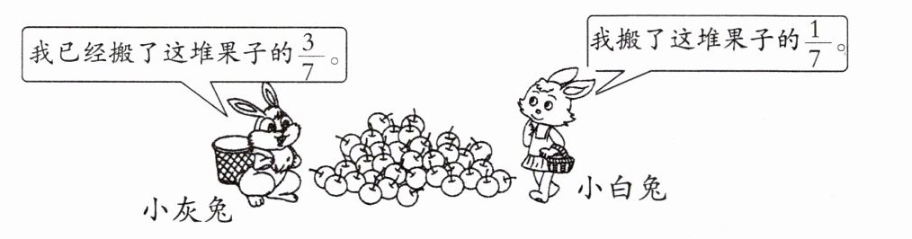 (2) 小灰兔和小白兔一共搬了这堆果子的几分之几?