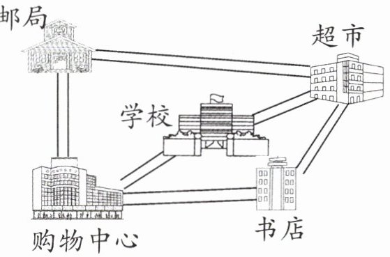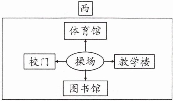 8. 小英在完成校园示意图时,把上方定为西面。根据下面的示意图可以知道,教学楼是在校门的(