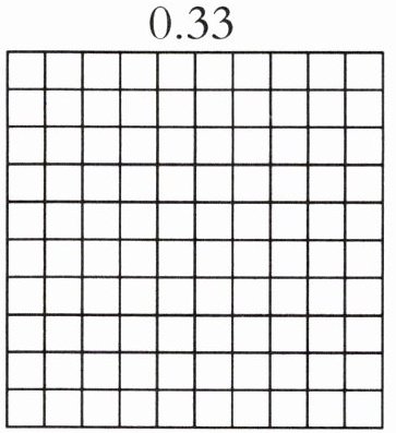 【解析】:对于0.8,图中是10个相同的小正方形组成的一个整体,0.8表示把整体平均分成10份,取其中的8份,所以涂色8个小正方形;对于0.33,图中是10×10=100个相同的小正方形组成的一个整体,0.33表示把整体平均分成100份,取其中的33份,所以涂色33个小正方形。
