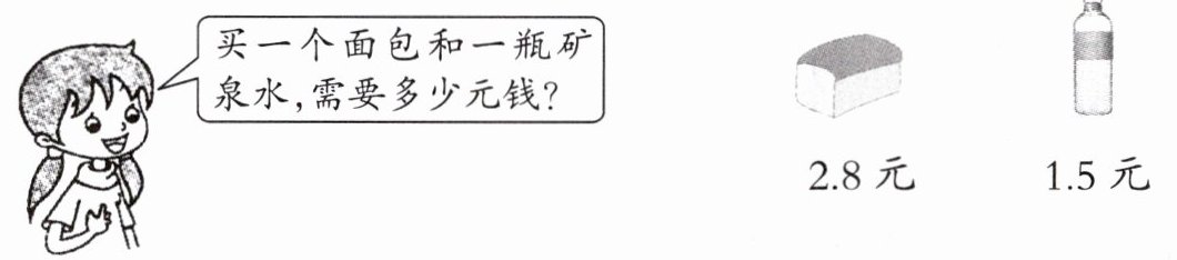 3. 一支铅笔 1.5 元,一支钢笔 7.2 元。红红买一支铅笔和一支钢笔一共要付多少元?妈妈给红红 10 元钱,还可找回多少钱?