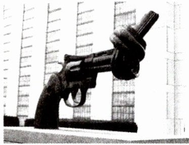 (3)示例:它是联合国总部花园内的一座雕像,名为“打结的手枪”,它的构思与造型十分奇特,是一支枪管扭曲打结的手枪,包含的寓意是联合国的主要职责是“以和平方式解决国际争端,维护世界和平”。