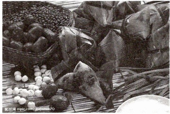 ③接着是包粽子。早一个月,妈妈就到远处的苇塘里打下一把把宽宽的苇叶,阴干在屋子里。又从路旁的马兰草上剪下一根根长长的草叶。红枣大米红红白白,泡在瓷盆里;包粽时,便一张张捋平苇叶,包上糯米和红枣,菱形的粽子包好之后,再抽出泡在水里的马兰草叶,一头用牙咬住,用另一头去捆那米粽。那时,妈妈年轻,手脚灵活,干什么活儿都利索。