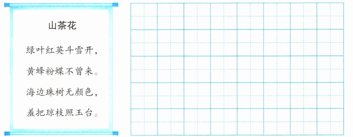 1. 明代诗人杨慎在云南居住了35年,他写过一首《山茶花》,请你读一读、抄一抄。