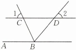 11.(★★★☆☆)如图,直线$AB// CD$,$CB平分\angle ABD$,$\angle1= 65^{\circ}$,求$\angle2$的度数。