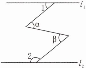 解:延长∠α的一边交$l_2$于点P,设∠α的另一边与$l_1$交于点Q