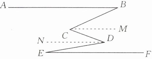 过点C向右作CM//AB,过点D向右作DN//CM。∵CM//AB,∠B=25°,∴∠BCM=∠B=25°(两直线平行,内错角相等)。∵∠BCD=45°,∴∠MCD=∠BCD - ∠BCM=45° - 25°=20°。∵DN//CM,∴∠CDN=∠MCD=20°(两直线平行,内错角相等)。∵∠CDE=30°,∴∠NDE=∠CDE - ∠CDN=30° - 20°=10°。∵∠E=10°,∴∠NDE=∠E,∴DN//EF(内错角相等,两直线平行)。∵CM//AB,DN//CM,∴AB//DN,又∵DN//EF,∴AB//EF(平行于同一直线的两直线平行)。