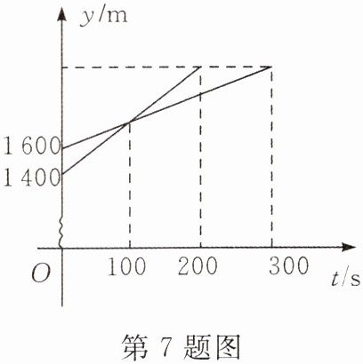 7.(★★★☆☆)一次越野赛中,当小明跑了$1600$m时,小刚跑了$1400$m,小明、小刚此后所跑的路程$y$(单位:m)与时间$t$(单位:s)之间的函数关系如图所示,则这次越野跑的全程为