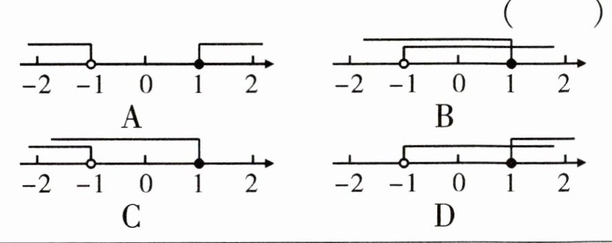 3. 不等式组$\begin{cases}x > -1 \\x ≤ 1\end{cases} $的解集在数轴上表示为(