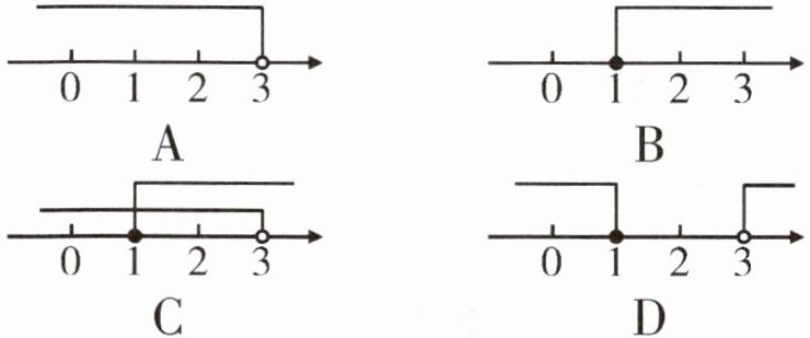 3. 不等式组$\begin{cases}x < 3 \\x ≥ 1\end{cases} $的解集在数轴上表示为(