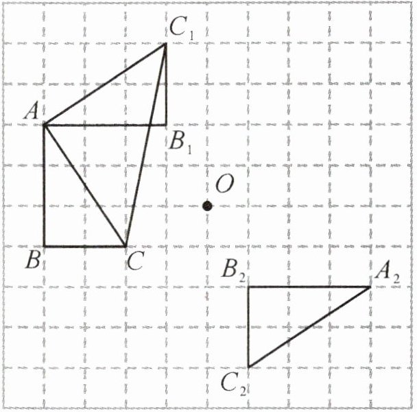 $(2)△A_2B_2C_2$与$△AB_1C_1$关于点O成中心对称,画出$△A_2B_2C_2;$