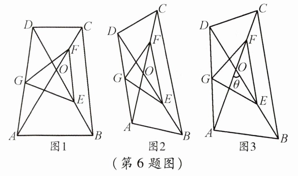 6. 如图,线段$AC与BD交于O$,$DO = DC$,$AO = AB$,$E$,$F$,$G分别是OB$,$OC$,$AD$的中点。