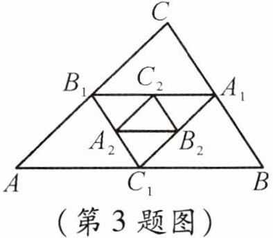 3. 如图,在$\triangle ABC$中,已知$AB = 8$,$BC = 6$,$AC = 7$,依次连接$\triangle ABC$的三边中点,得到$\triangle A_1B_1C_1$,再依次连接$\triangle A_1B_1C_1$的三边中点,得到$\triangle A_2B_2C_2$,…,按这样的规律下去,$\triangle A_{2023}B_{2023}C_{2023}$的周长为