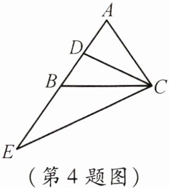 4. 如图,在$\triangle ABC$中,$CD$是中线,点$E在AB$的延长线上,$AB = AC = BE$,连接$CE$,求证:$CE = 2CD$。