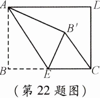 22. 如图,矩形$ABCD$中,$AB= 3$,$BC= 4$,点$E是BC$边上一点,连接$AE$,把$∠B沿AE$折叠,使点$B落在点B'$处,当$\triangle CEB'$是直角三角形时,$BE$的长为