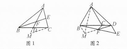 证明如图2延长DF点M,使FM = DF,连接BM、AM,