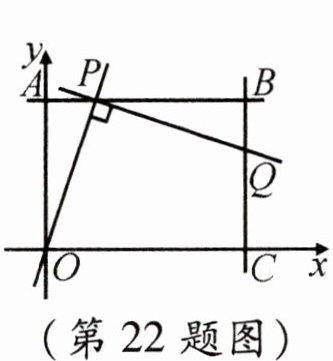 22. 如图,矩形 $ O A B C $ 在平面直角坐标系中,$ A ( 0, 3 ) $,$ C ( 4, 0 ) $,点 $ P $ 为直线 $ A B $ 上一动点,将直线 $ O P $ 绕点 $ P $ 逆时针方向旋转 $ 90 ^ { \circ } $ 交直线 $ B C $ 于点 $ Q $,当 $ \triangle P O Q $ 为等腰三角形时,点 $ P $ 的坐标为______